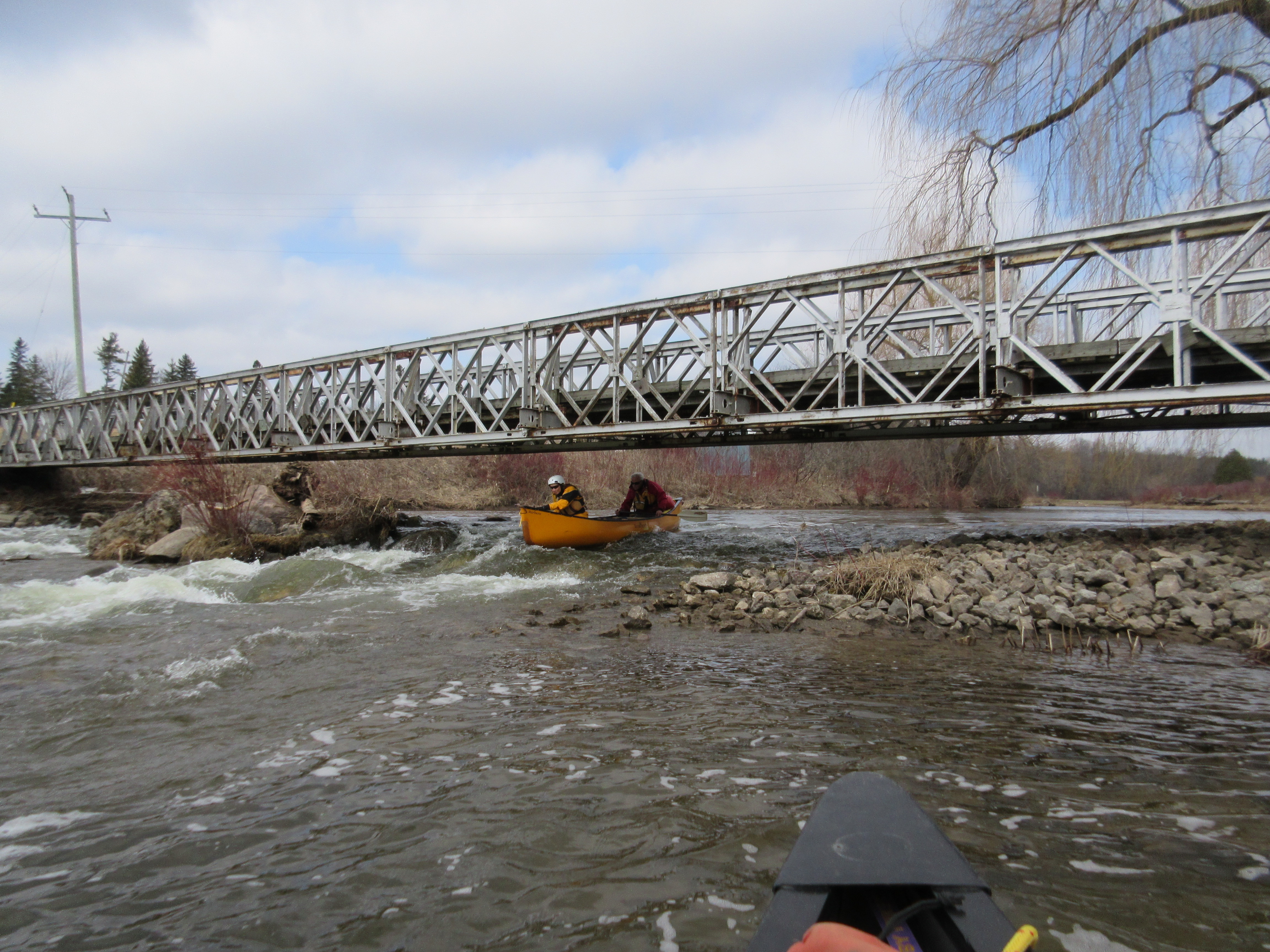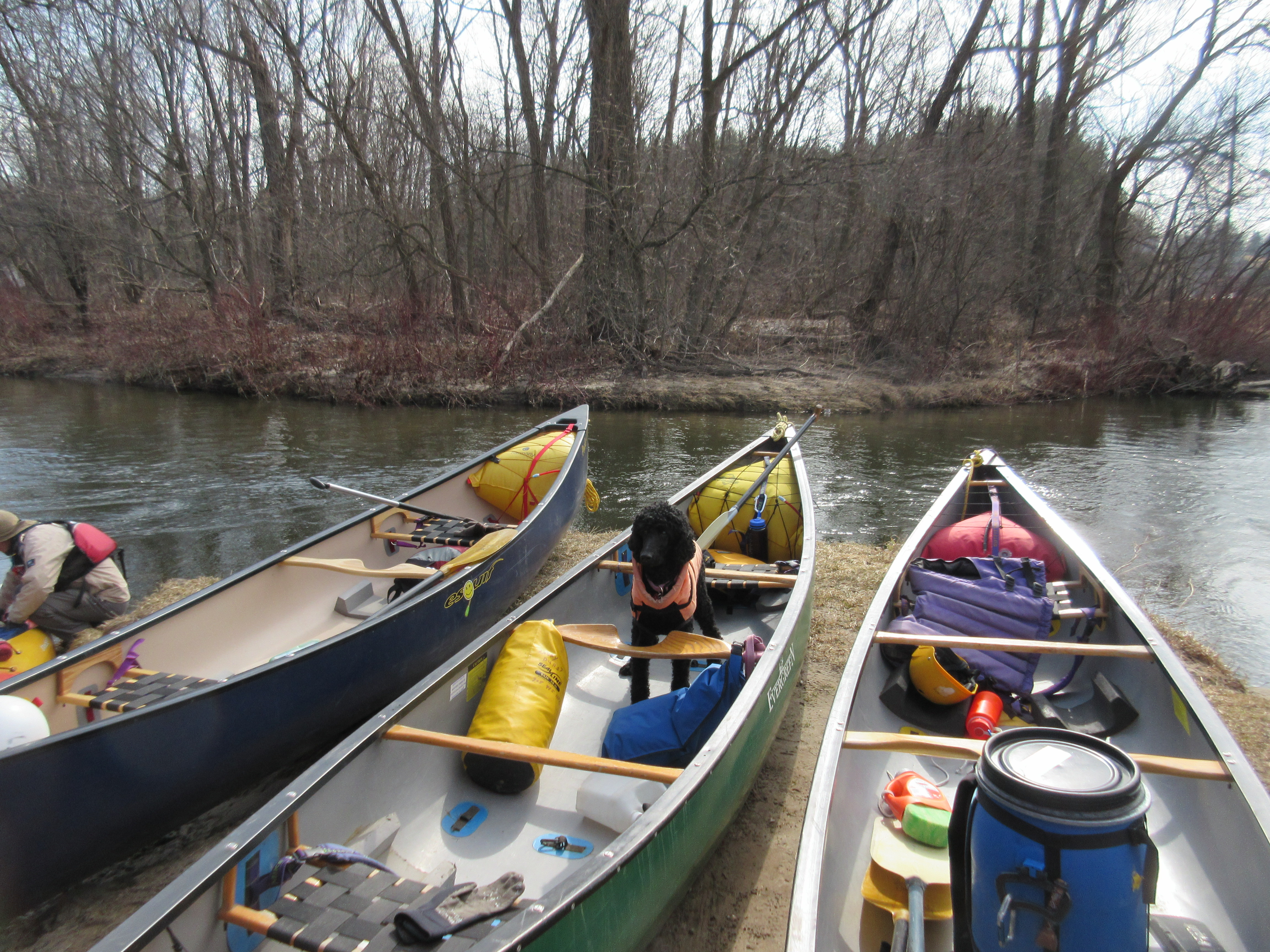 We had 11 boats out today, 2 solo and 9 tandem. Lots of humans and one dog. One large tree looked like it was going to cause a portage but we all managed to squeeze through the branches. We had one portage at Cheltenham except for one brave paddler....see video: youtu.be/amKIQGppA0o