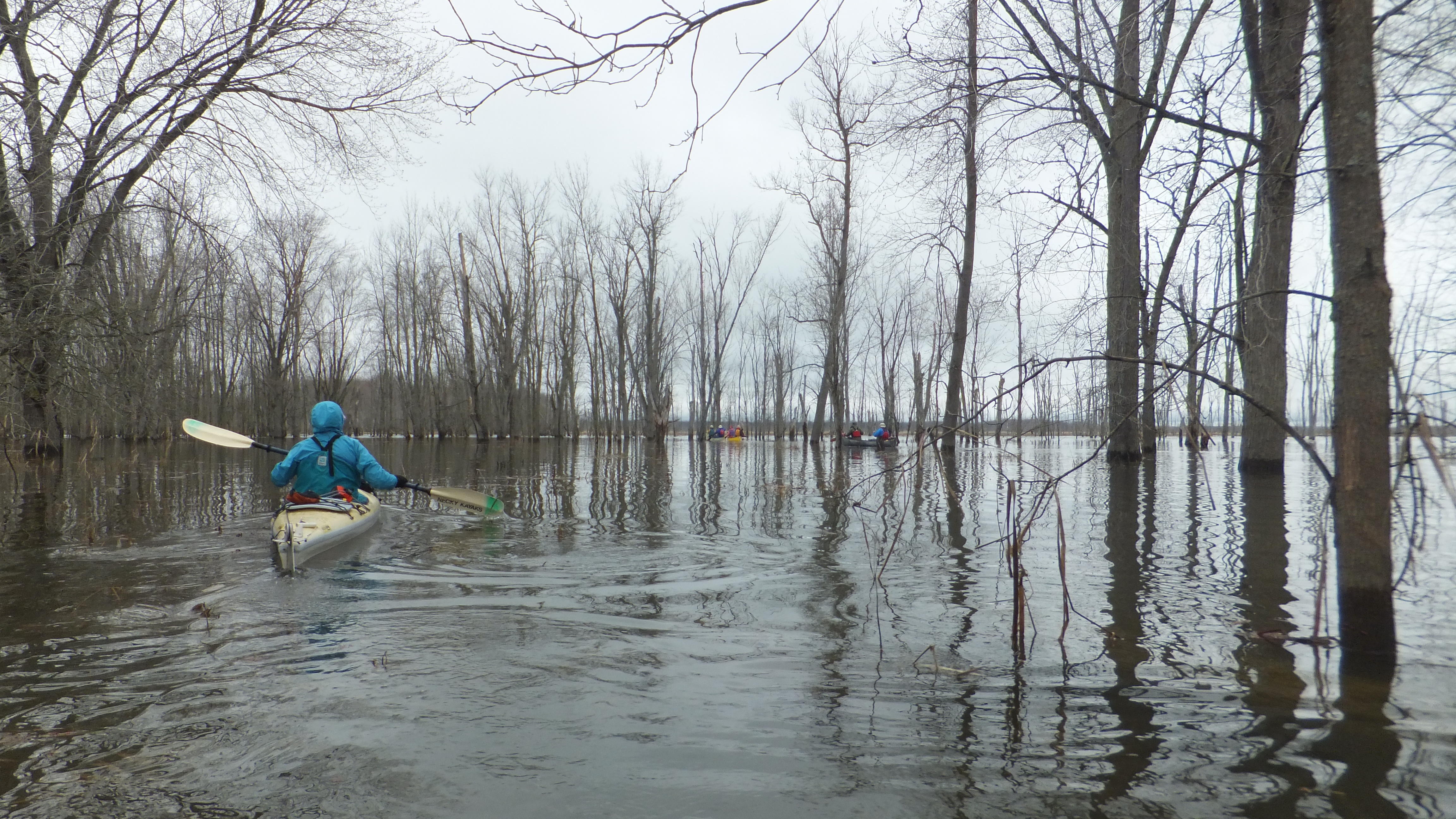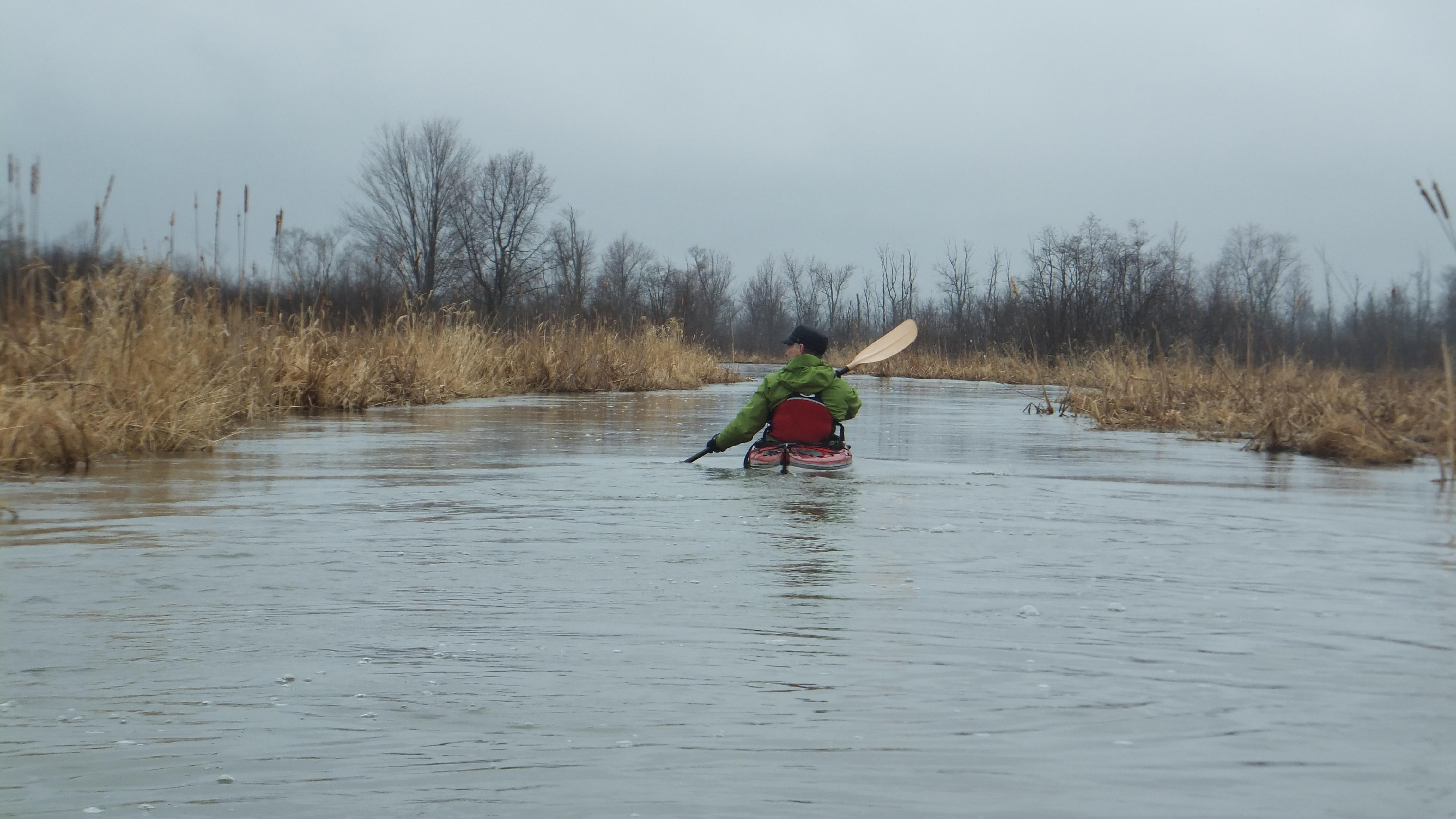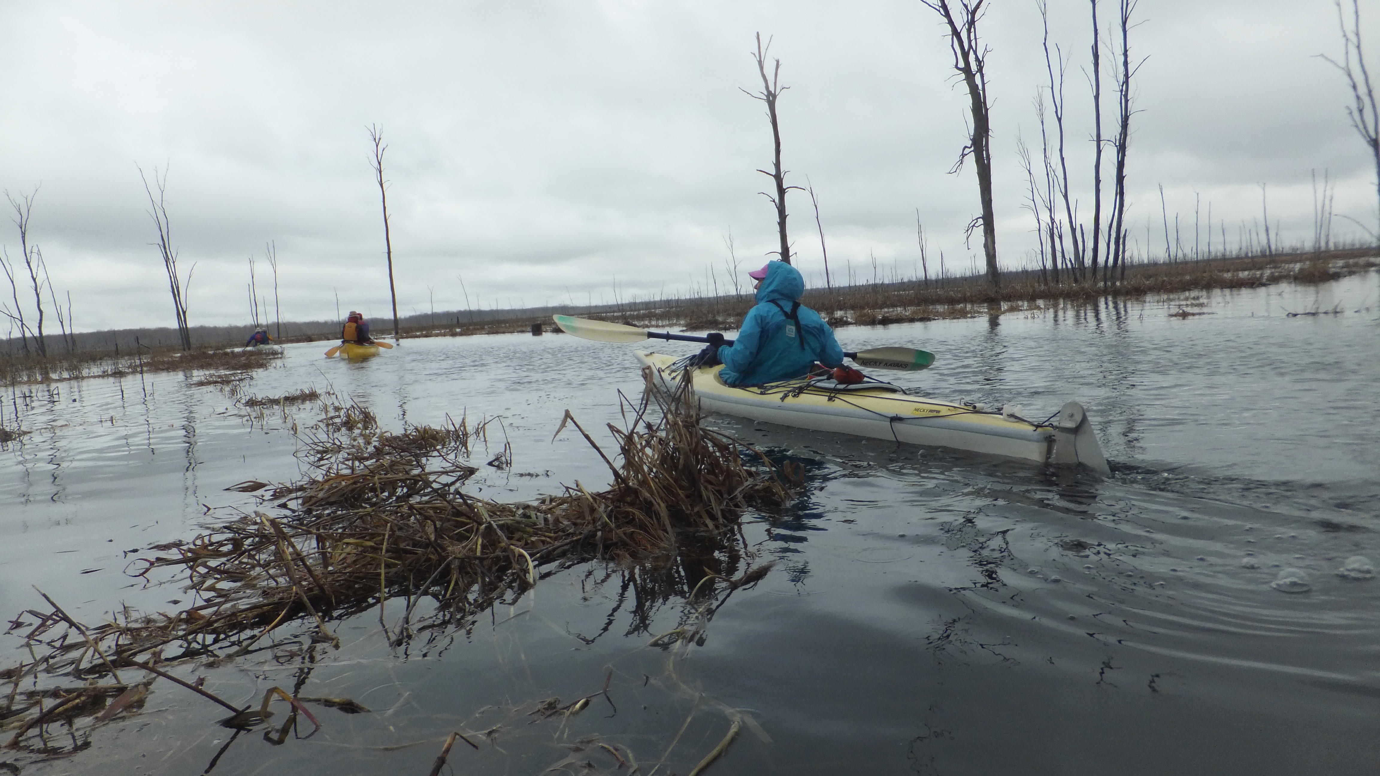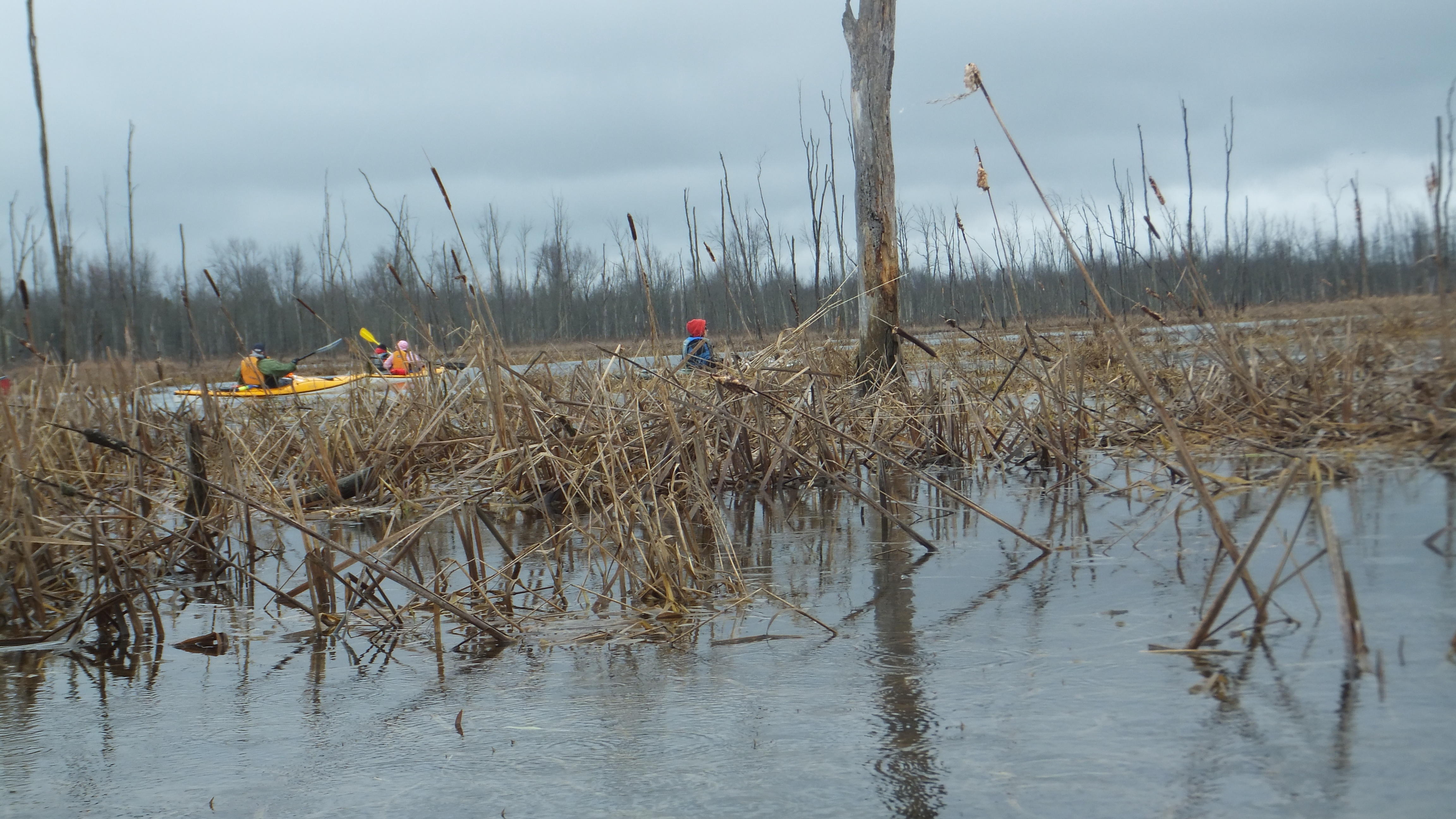Helping each other getting in the muddy river. A creek with lots of turns and lots of flooded area next to the river. Lots of birds we heard, but didn't see that many up close, beside the Red wing black bird.