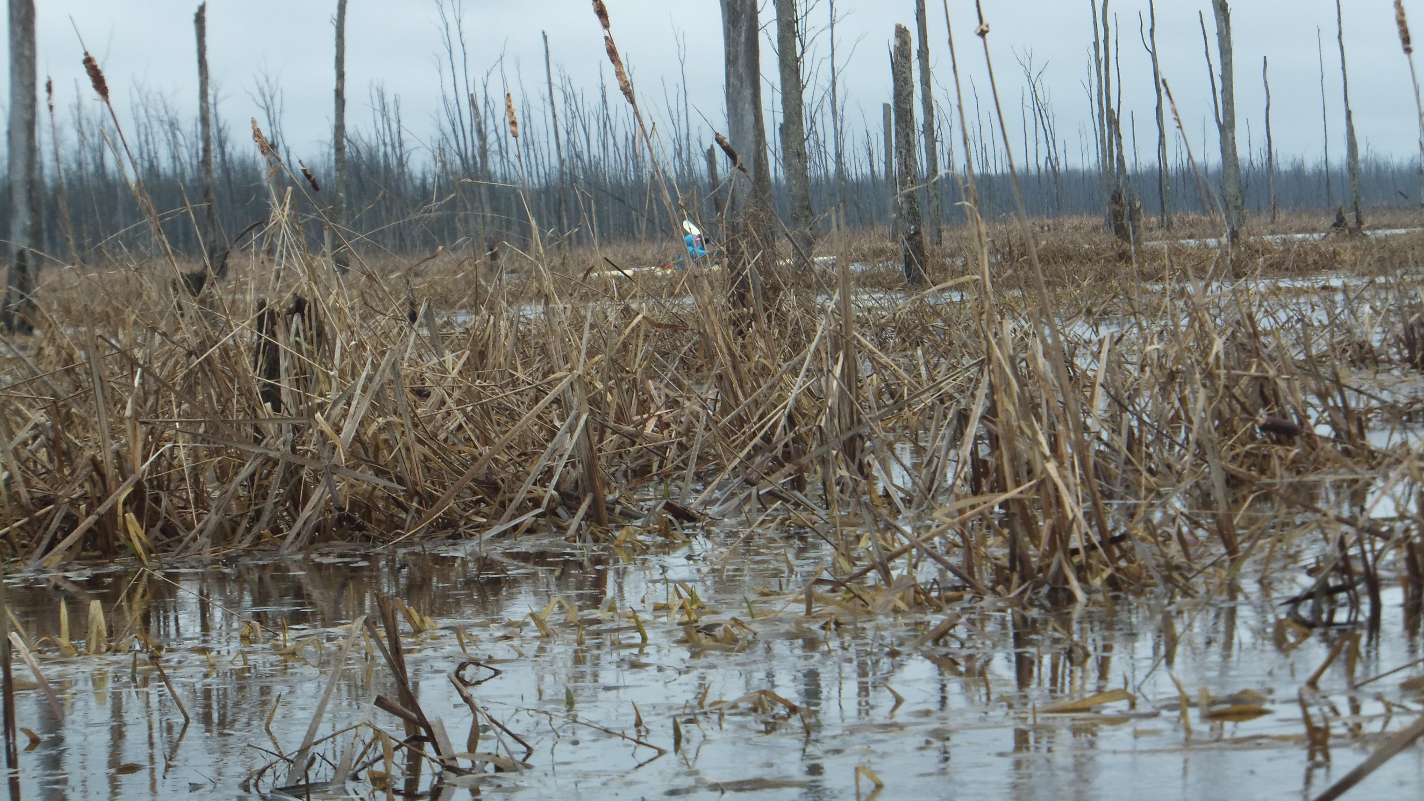 At one point we broke through the forest onto a field, it turned out to be a flooded corn field, the wind was strong here, and the water level was getting lower and lower and some boats got stranded.